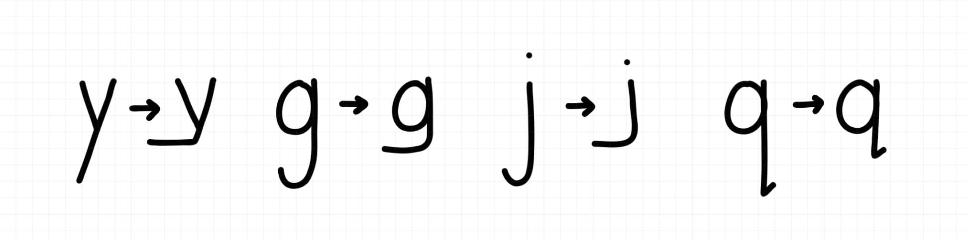 - The second example has shortened descenders only