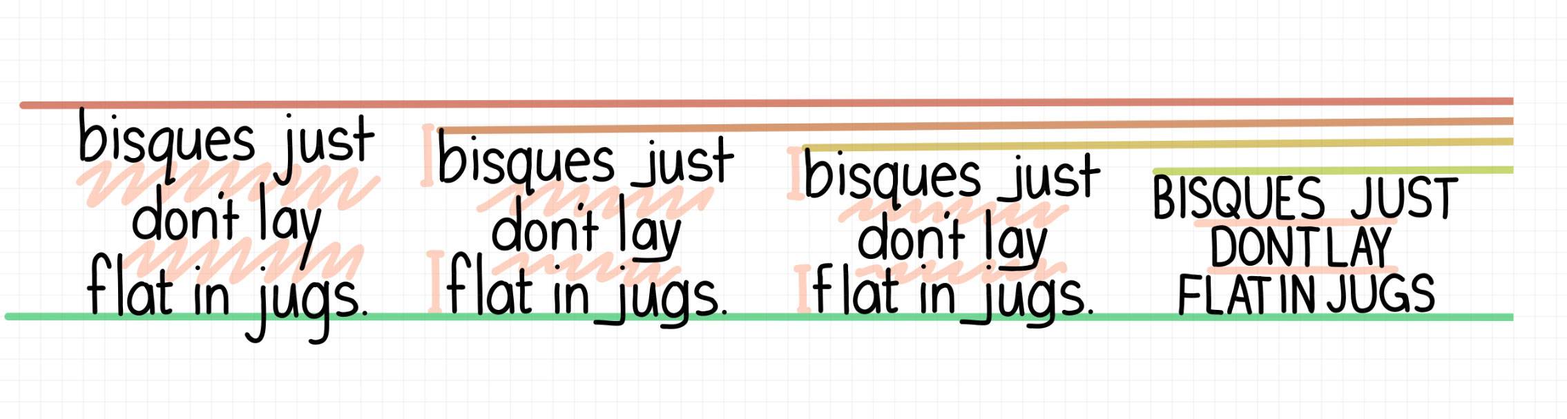 - Change your descenders from “down” to “side.” Making your descenders curve or go horizontal underneath the word saves vertical room when stacking your lines of text: